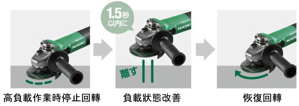在高負載作業中回轉停止,等待負載狀況改善後1.5秒內, 自動恢復回轉。